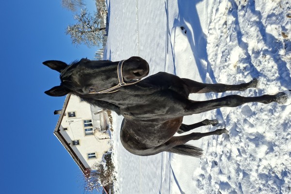 Très gentil aux soins et proche de l'homme, belles allures de base. Vit en stabulation, groupe ok, pas dominant, le boxe lui convient aussi très bien.